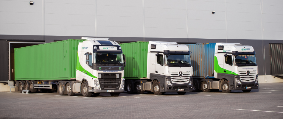 Nasza obecna flota składa się wyłącznie z nowych samochodów ciężarowych (maksymalnie 2-letnich), które spełniają najnowsze normy emisji spalin EURO-6.